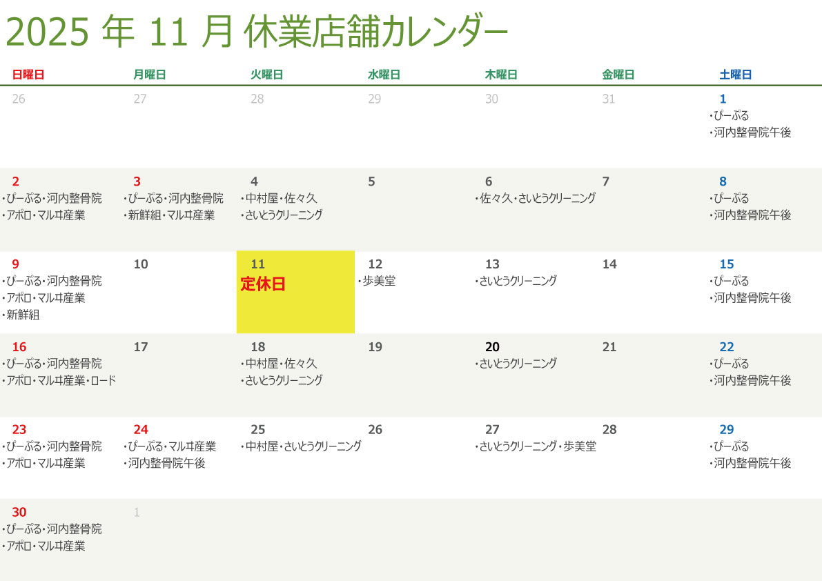 ホーム / 新着情報 / お知らせ / セール情報 / 11月定休日催事情報