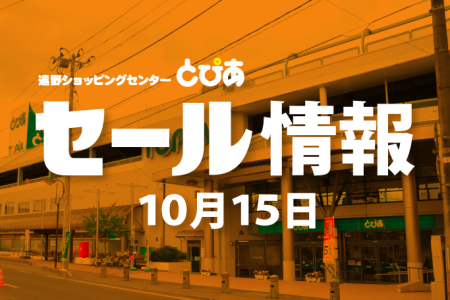 明日15日(水)開催!1日限りのスペシャルセールのご案内です!※この日は無料バス運行日となっております。